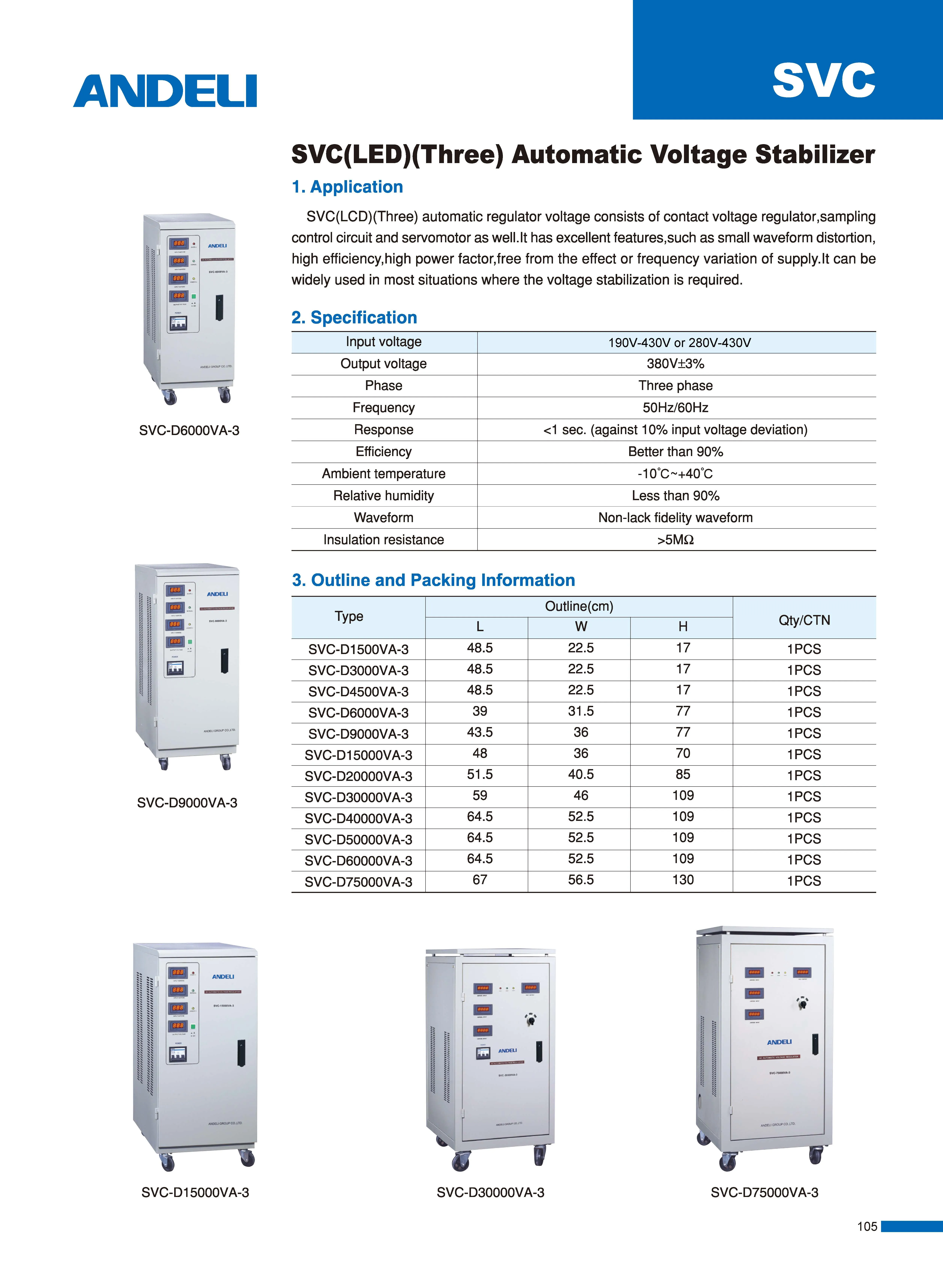 Available NowSVC(LED)(Three) automatic regulator voltage consists of contact voltage regulator,sampling control circuit and servomotor as well.It has excellent features,such as small waveform distortion,high efficiency,high power factor,free from the effect or frequency variation of supply. It can be widely used in most situations where the voltage stabilization is required.